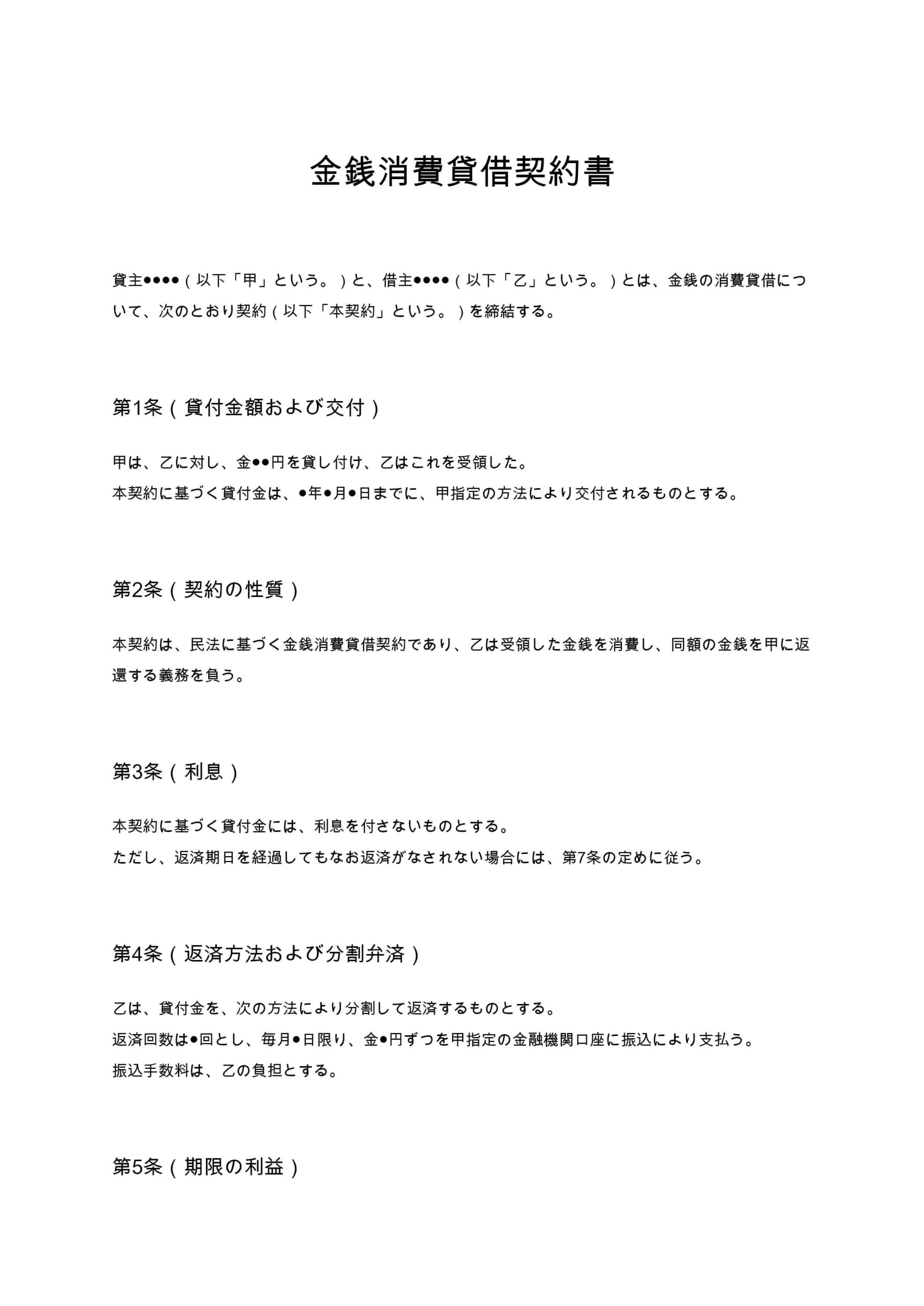 金融消費貸借契約書は、金銭を貸し付ける側と借り受ける側の間で、貸付金額、利息、返済方法、期限の利益喪失などの条件を明確に定める契約書です。個人間取引から企業間融資まで幅広く利用されます。 ...