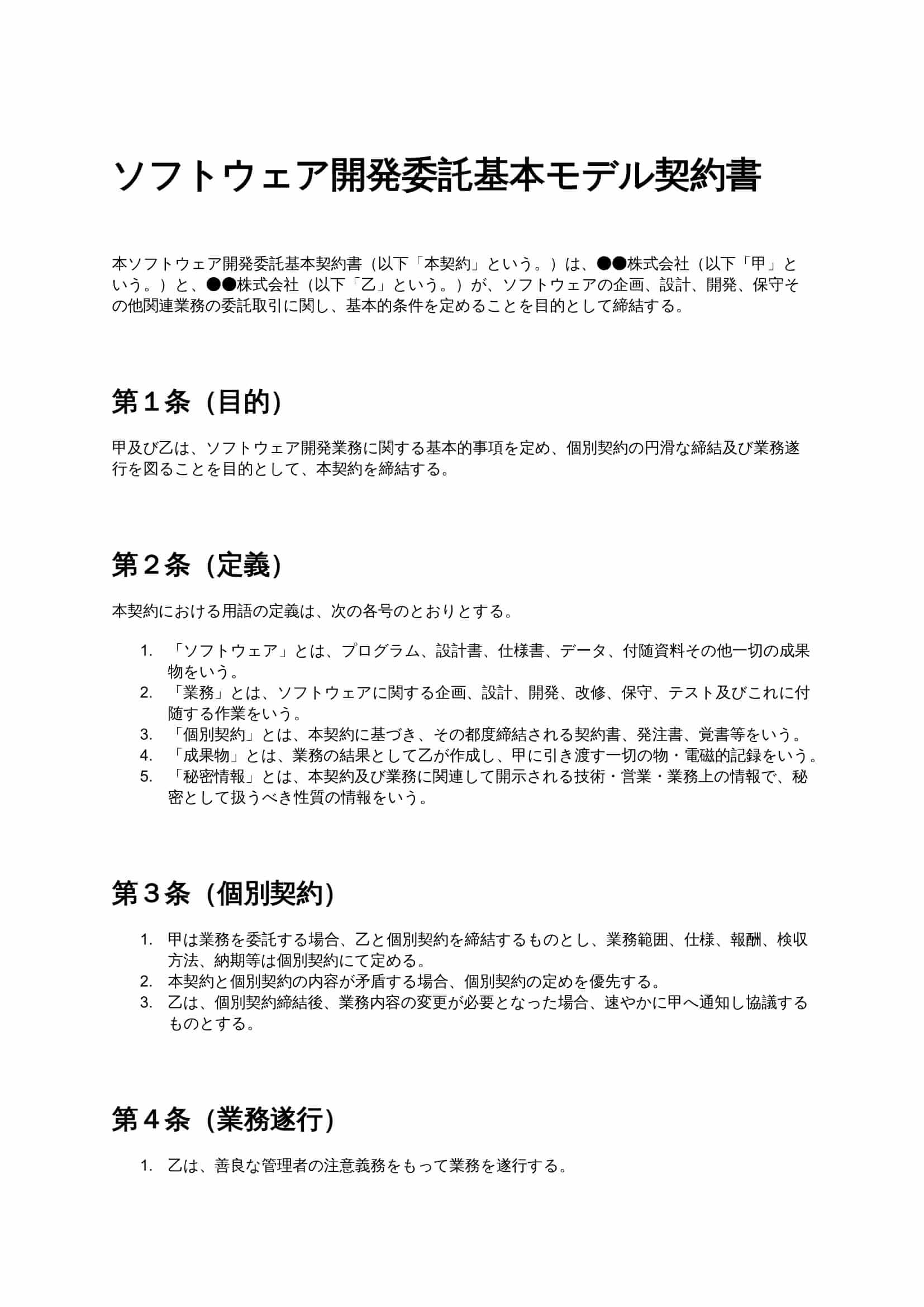 ソフトウェア開発委託基本契約書は、システムやアプリの設計・開発・保守業務を外部へ委託する際の共通ルールを定めるための基本契約です。個別案件ごとの仕様・報酬・納期などを円滑に取り決める土台として機能し、...