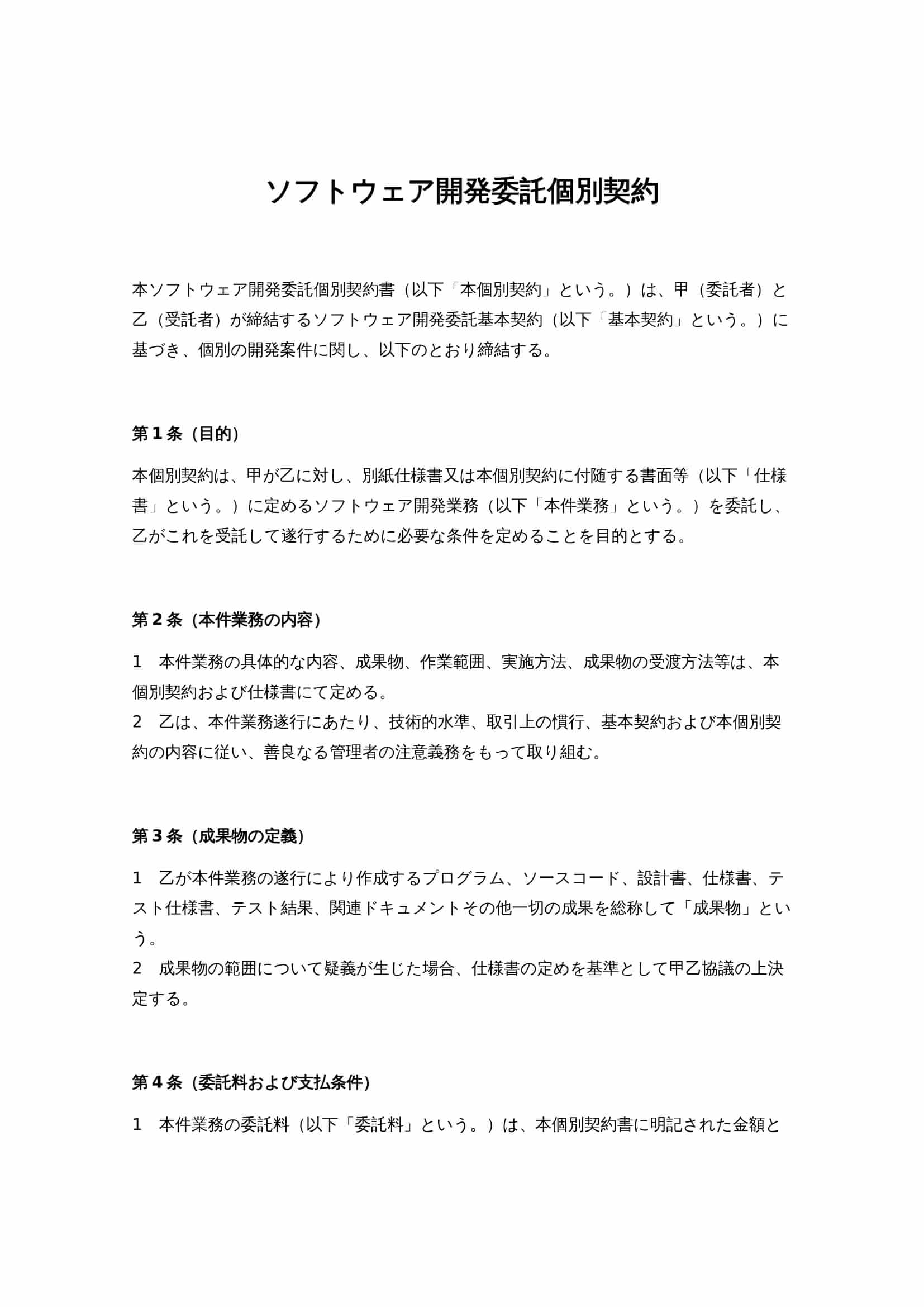 ソフトウェア開発委託個別契約書は、基本契約に基づき個別プロジェクトごとの業務内容・成果物・納期・対価を明確化するための契約書です。仕様変更や検収など実務上の重要ポイントを整理し、開発トラブルを防ぐため...
