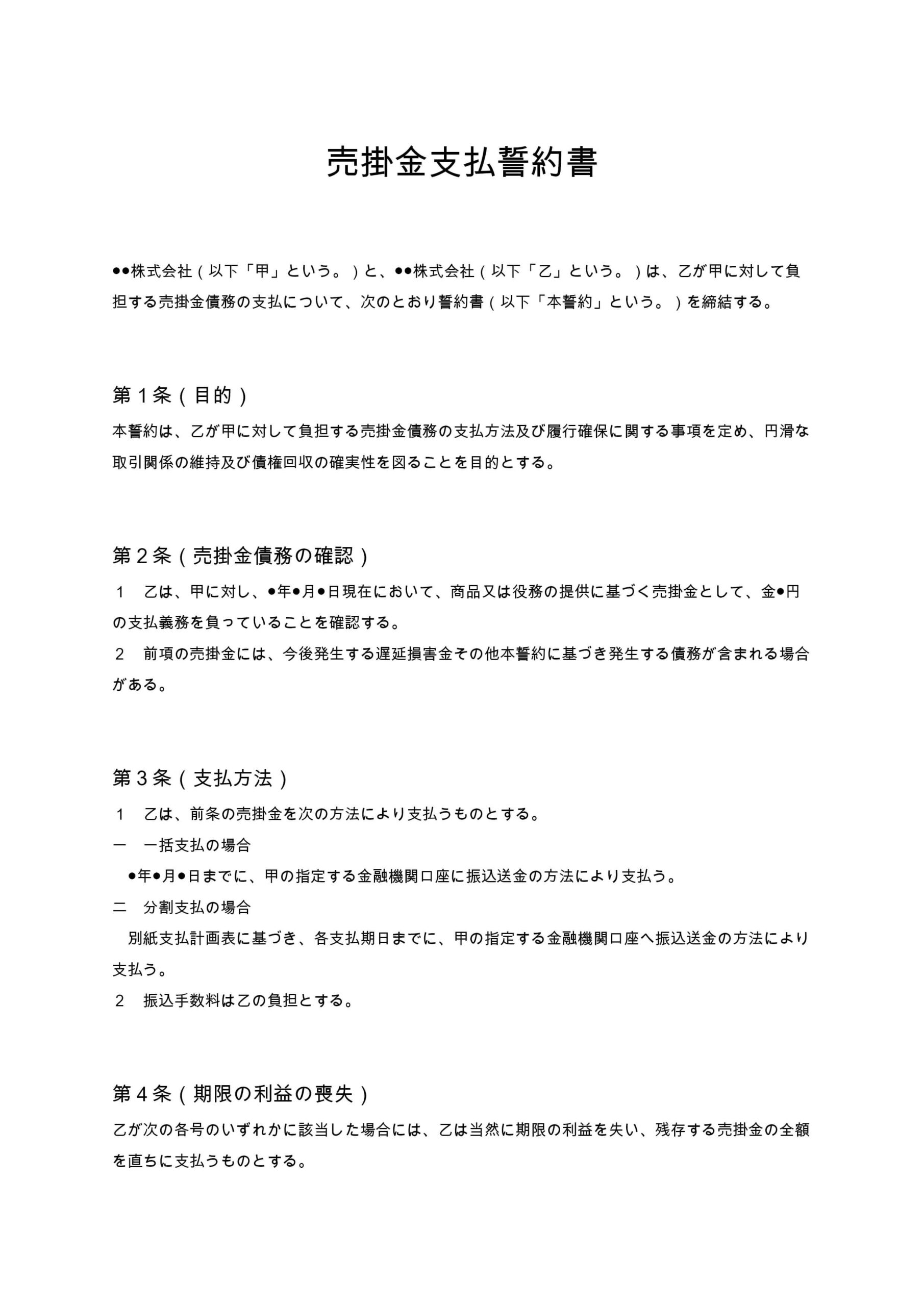 実務上、売掛金支払誓約書には次の条項を整備する必要があります。