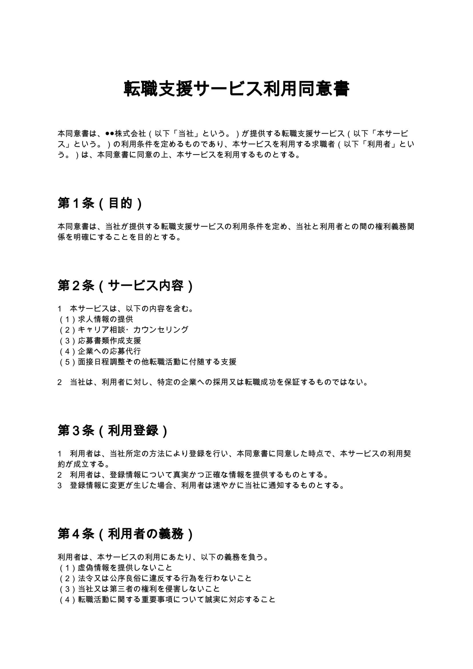 転職支援サービスの同意書には、以下の条項を必ず含める必要があります。