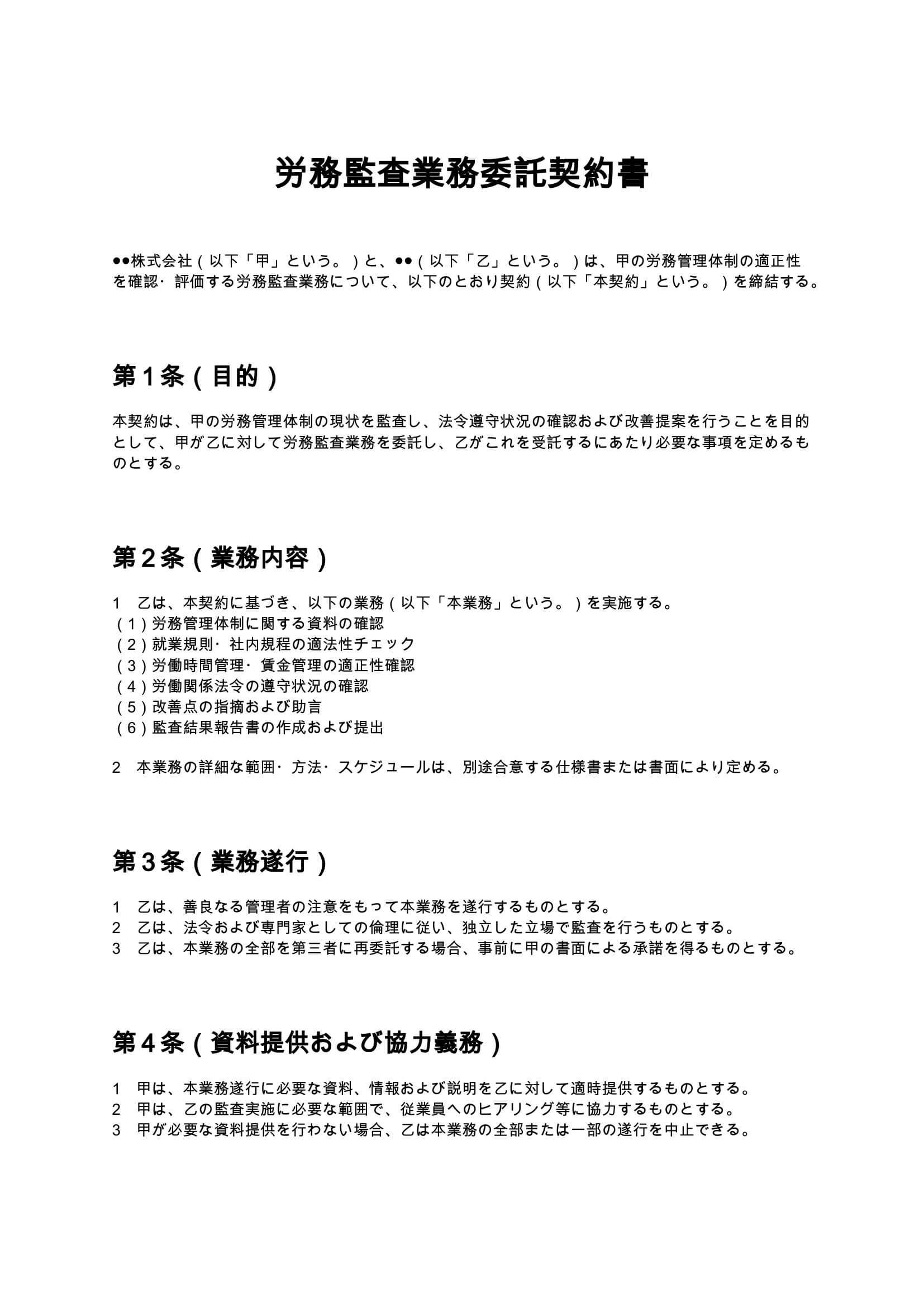 労務監査契約書には、業務の特性上、以下の条項を必ず盛り込む必要があります。
