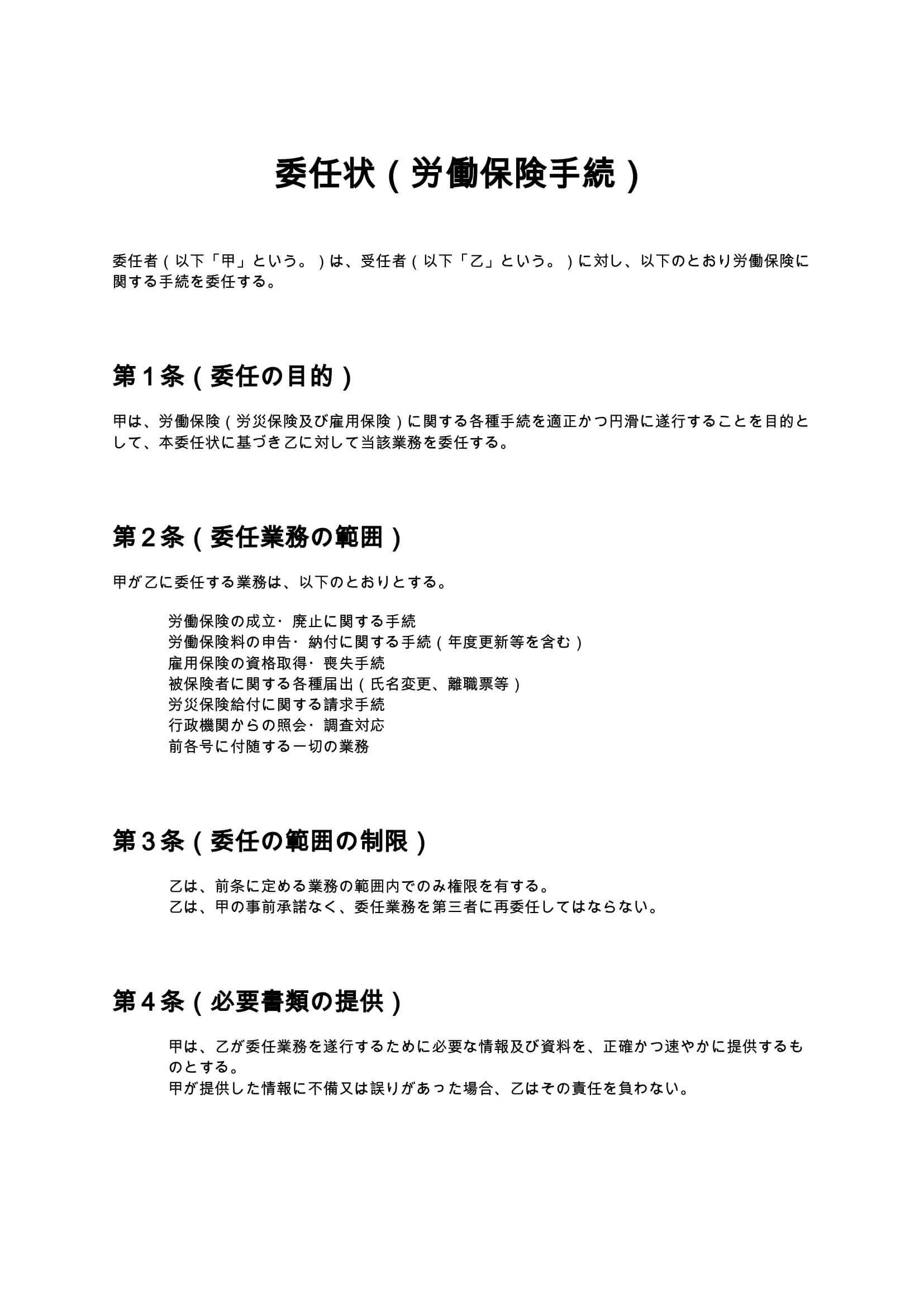 - 委任業務の範囲 →年度更新、資格取得、労災申請など具体的に記載します。