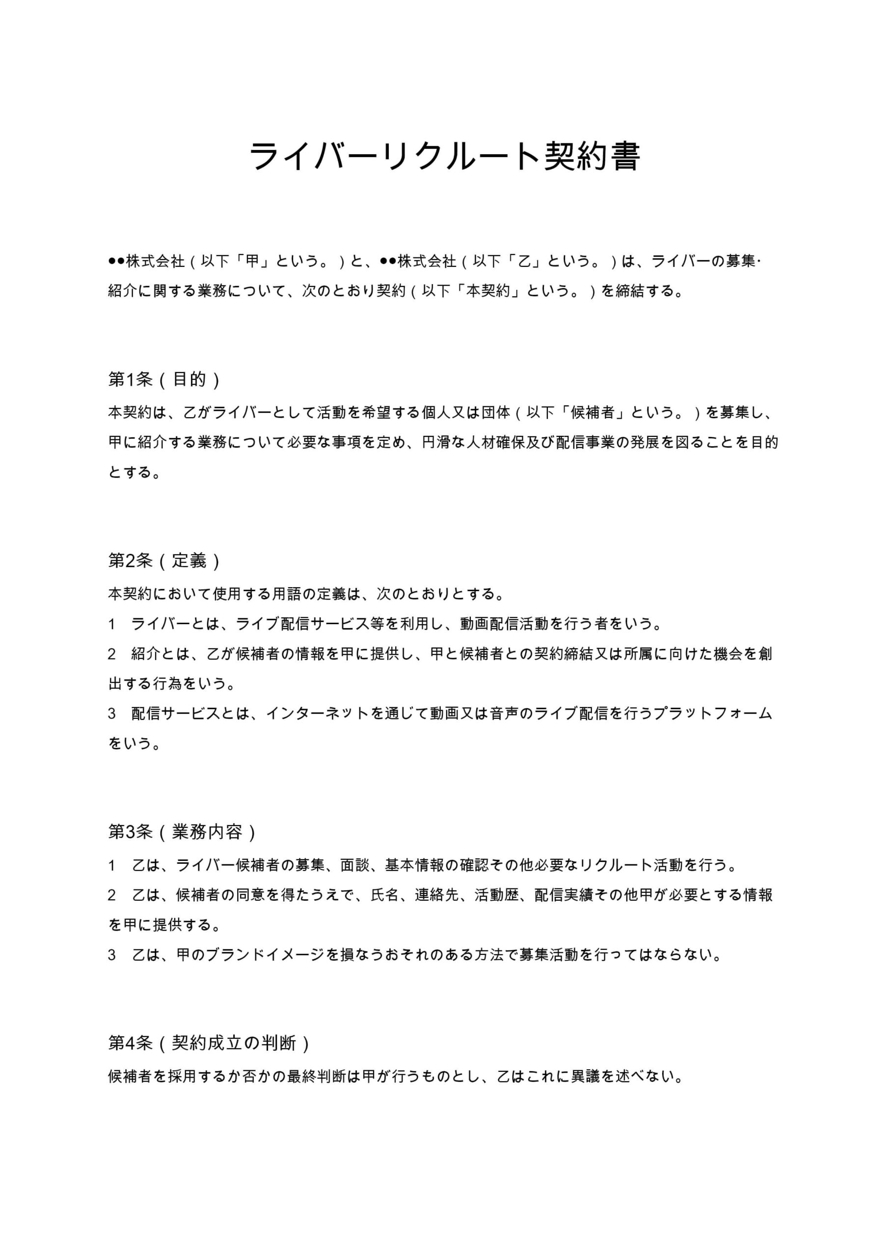 これらを明文化することで、ライバー案件特有の不確実性を大きく減らすことができます。