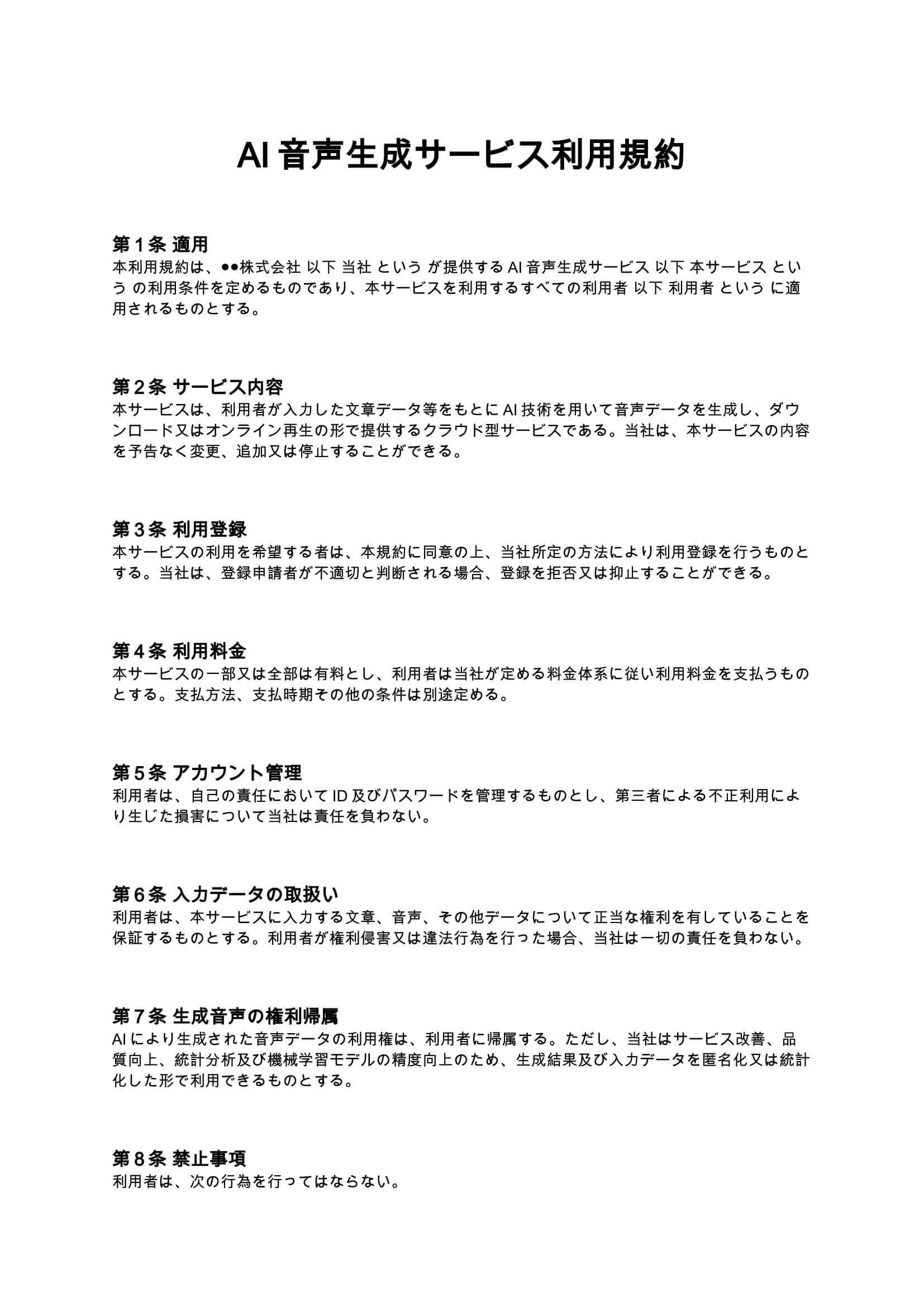 これらの条項を体系的に整理することで、サービス運営者とユーザーの関係が明確になり、トラブル発生時の対応が容易になります。