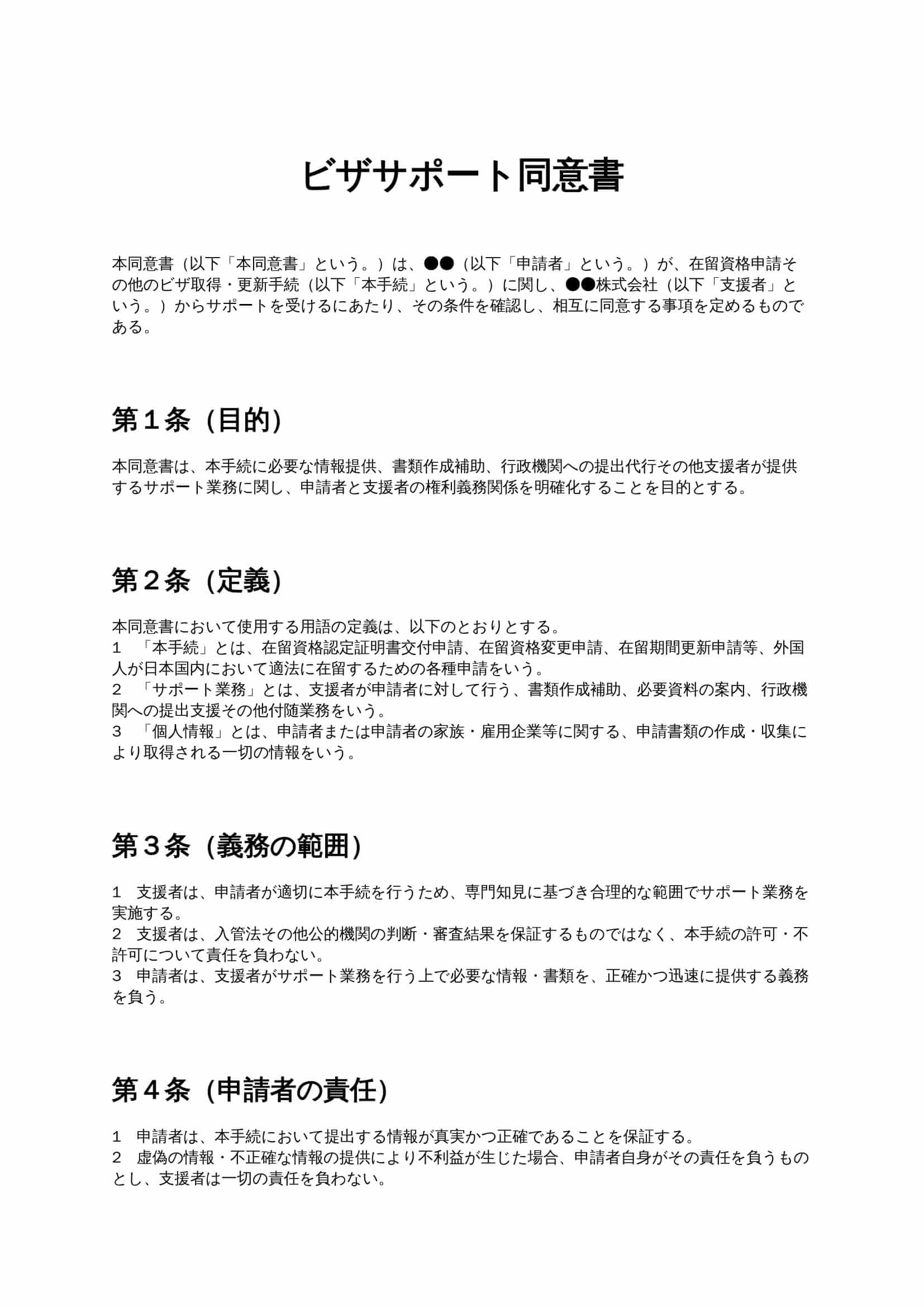 同意書には最低限記載すべき条項が存在します。以下にその代表的なものを示します。