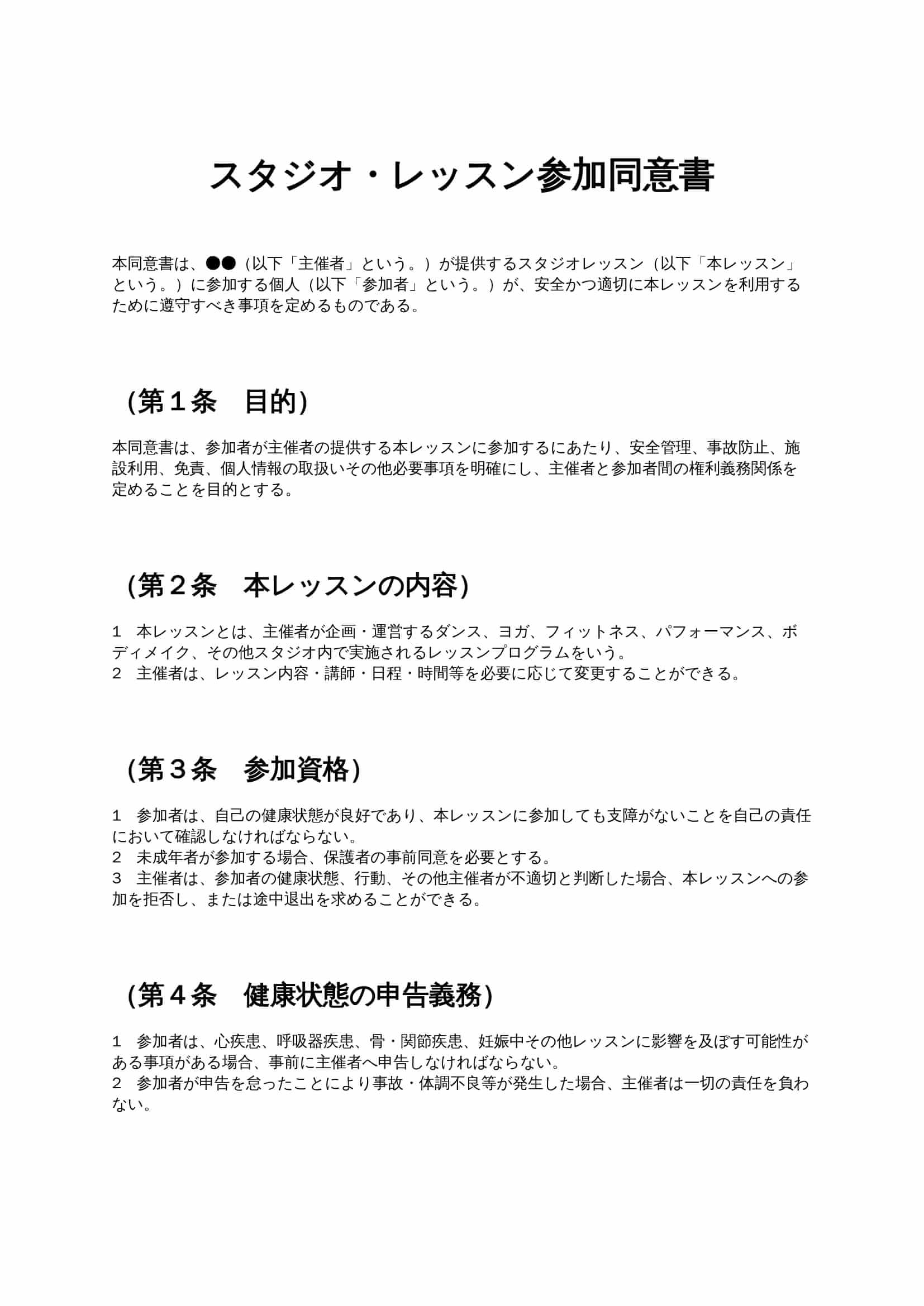 これらの条項は、施設側と企業側の双方が公平な立場で取引できるよう、できる限り具体的に記載することが重要です。