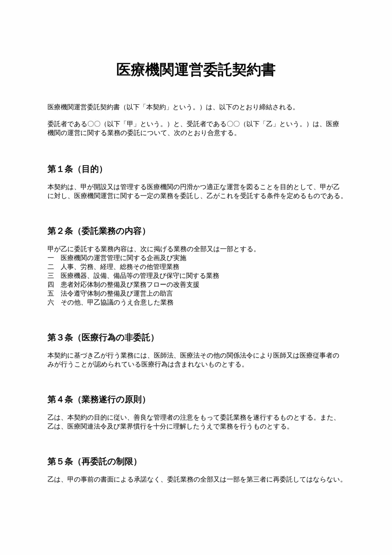 医療機関運営委託契約書