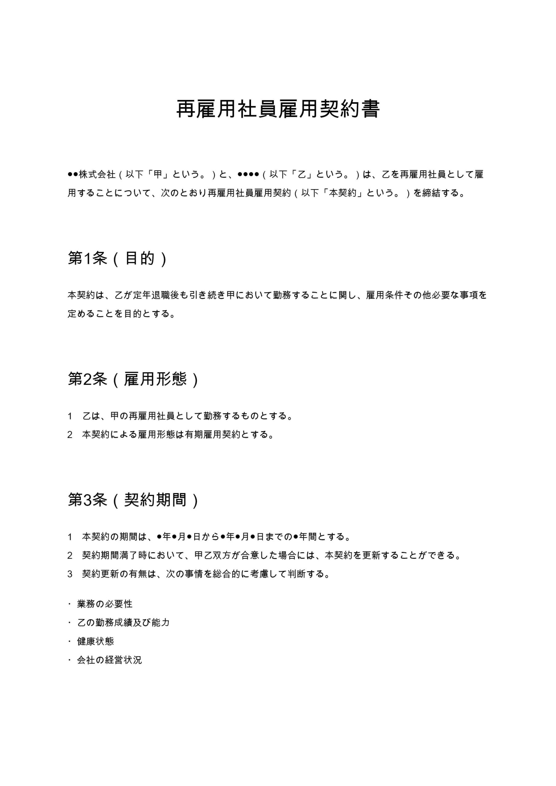 再雇用は通常の正社員契約とは異なる点も多いため、専用の契約書を用意しておくことが重要です。