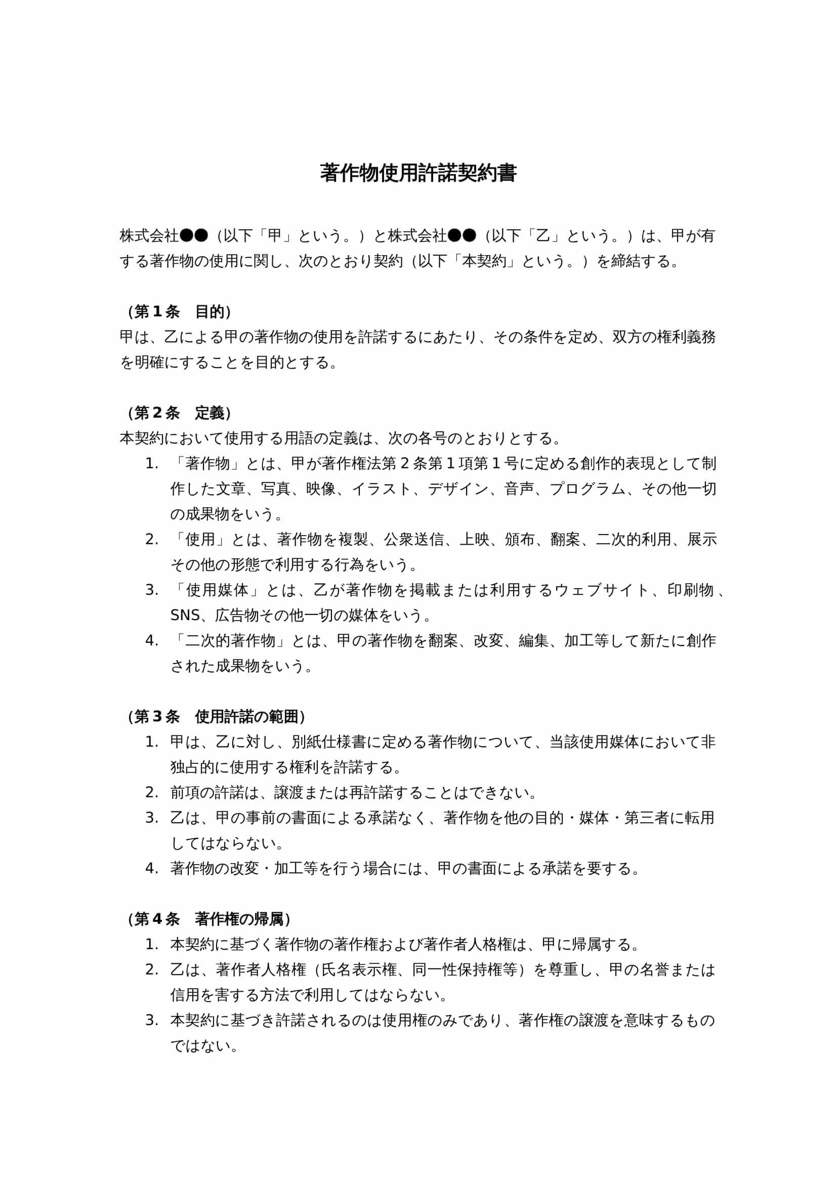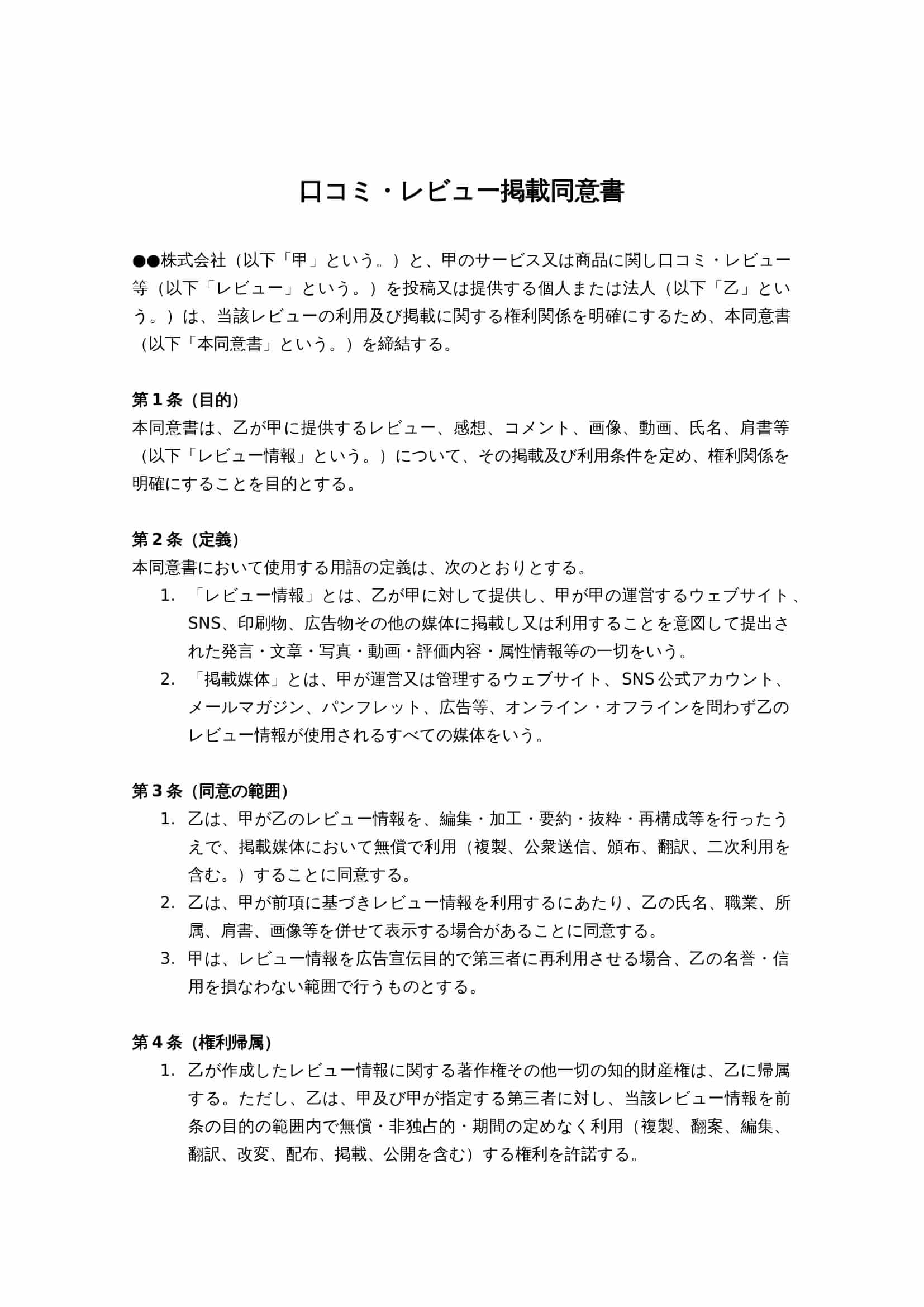 ユーザーが無断で複製・転載・改変を行わないよう、知的財産権条項は必須です。