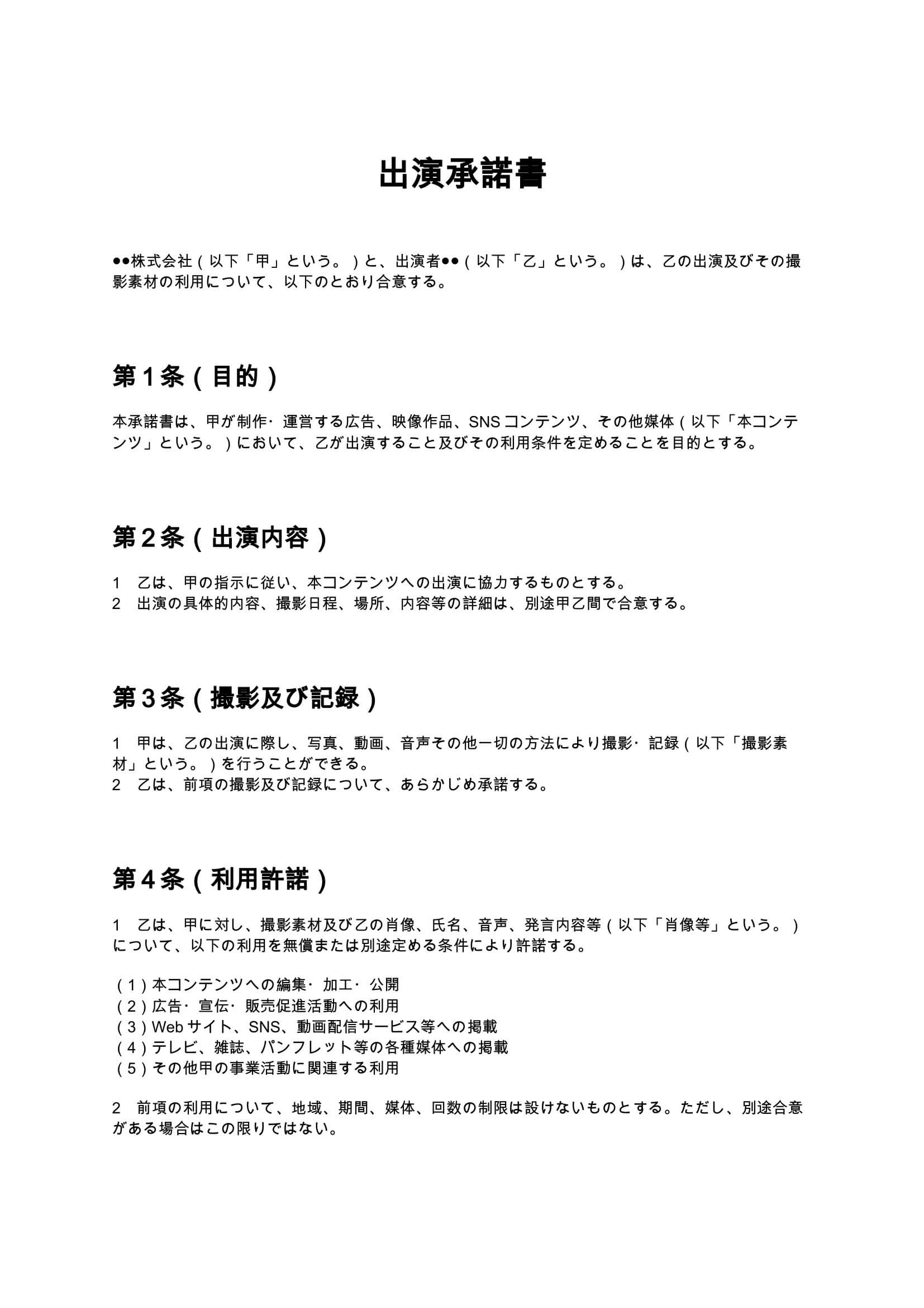 実務では、出演が伴う場合は「出演承諾書」を使うのが一般的です。