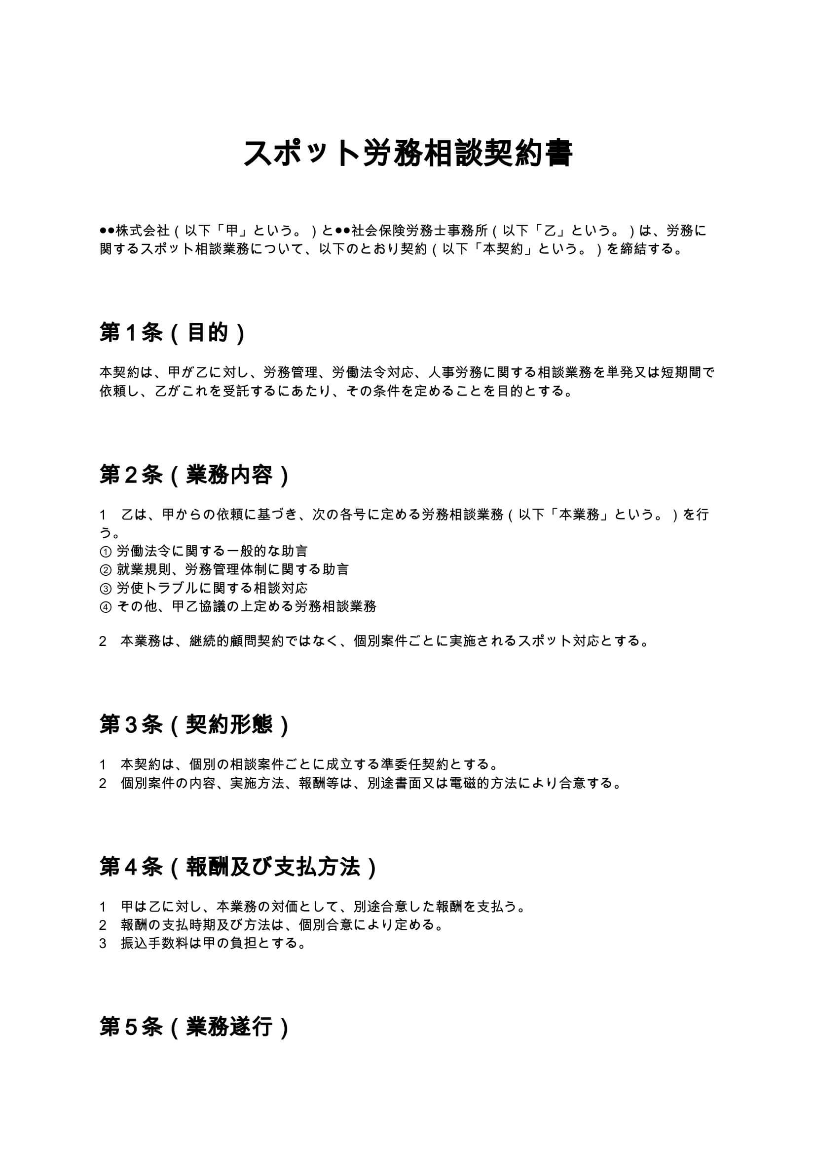 スポット労務相談契約書とは?